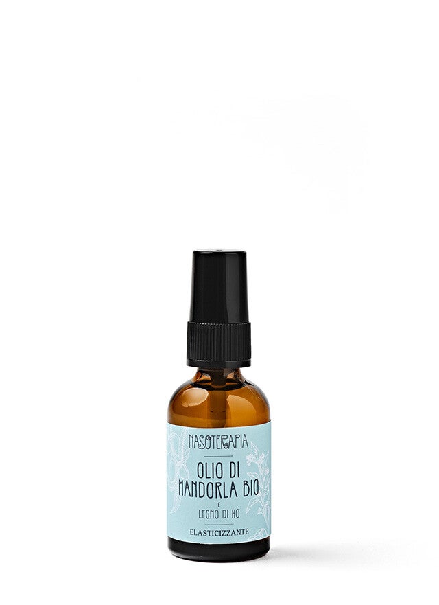 L’Olio di Mandorla è particolarmente indicato per le pelli secche, delicate o che tendono ad arrossarsi o a screpolarsi. Ricco di acidi grassi, fitosteroli e vitamine, contribuisce alla rigenerazione del film idrolipidico e alla normale elasticità della pelle. È un ottimo alleato per prevenire le smagliature durante e dopo la gravidanza e per proteggere le pelli più delicate. L’Olio Essenziale di Legno di ho, dalle proprietà lenitive, rafforza l’attività emolliente dell’olio di Mandorla e caratterizza la profumazione dolce e fiorita del prodotto
